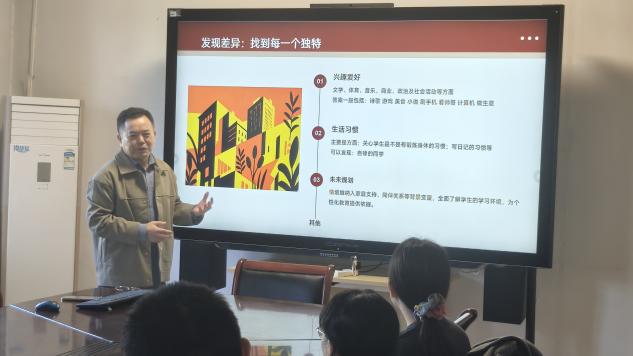 在“发现差异”环节,基于三个年度、6个班级、163位学生的持续观察访谈数据,窦老师从兴趣爱好、生活习惯、未来规划三个维度对学情展开分析。他指出,每位学生都是独特的个体,唯有全面了解学生,才能精准识别其潜能,为个性化培养奠定基础。他特别提到,通过观察学生在文学、体育、商业等方面的倾向,以及是否具备自律习惯、是否有清晰的职业规划,教师可以更精准地把握教育方向。