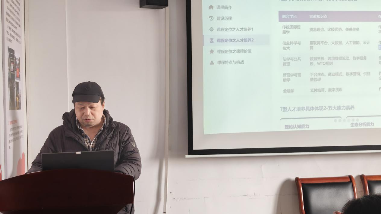 王丁老师从建设历程、课程定位和课程内容三个方面讲述了数字贸易学课程概况、分享了对数字贸易学课程的探索。数字贸易建设过程中,王丁老师与多名老师录制了数字人视频,尝试了数字贸易在跨境电商、市场营销、成本与风控等方面的实践。数字贸易学课程大力拥抱人工智能技术。自2025年10月起,课程组启动"数字人微课"建设项目,教师团队亲自参与数字人形象录制,将核心知识点转化为生动、精炼的数字化教学资源。这一举措不仅提升了教学效率,也为学生提供了可重复、可回看的个性化学习支持,是AI技术深度赋能高等教育的生动实践。