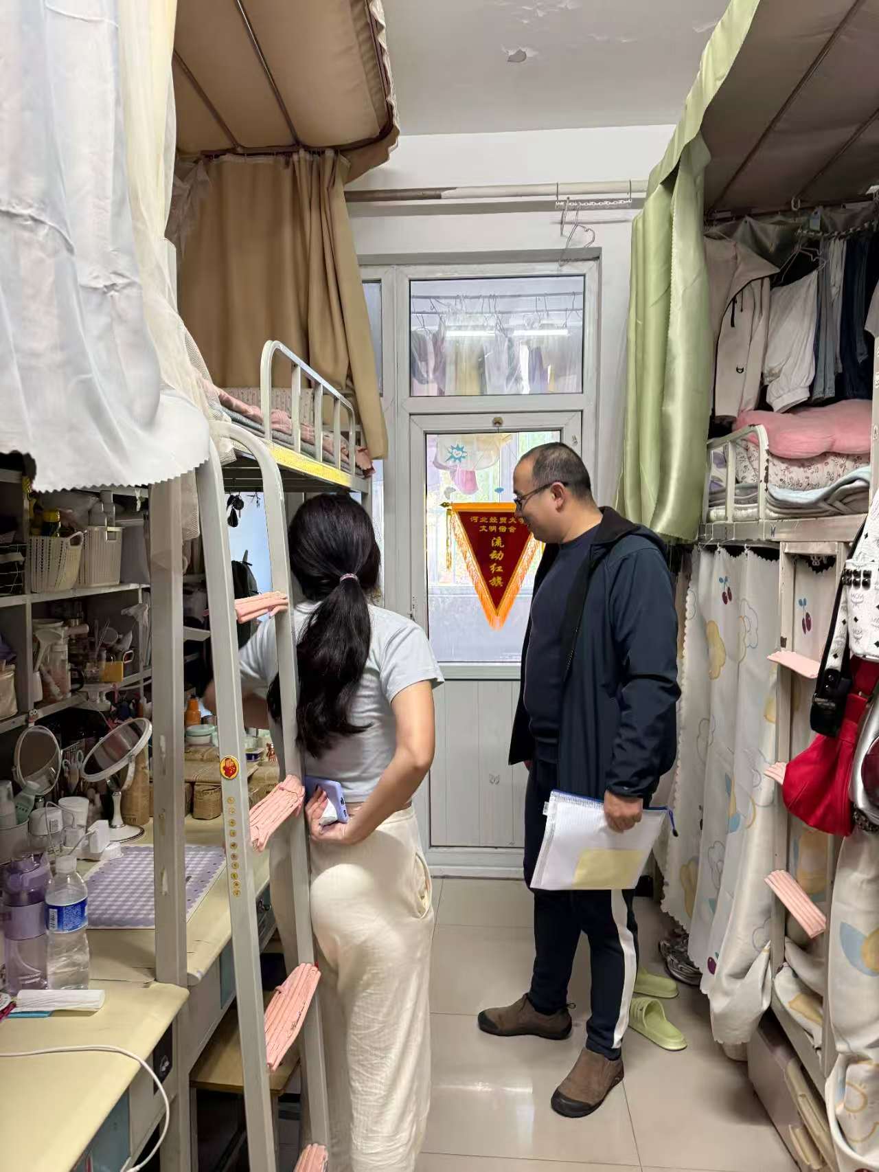 党委领导及辅导员组成专项检查小组,对学院学生宿舍进行了全面、细致的卫生与安全专项检查。检查开始前,学院领导在动员中明确指出,宿舍是学生在校生活的重要单元,其环境与安全状况直接关系到每位同学的成长与发展,要切实为学生营造一个安全、温馨的生活环境。